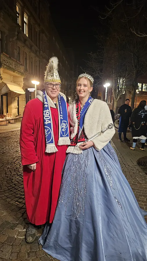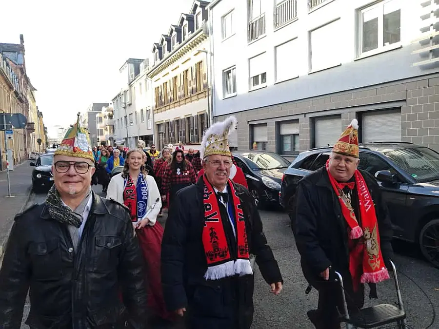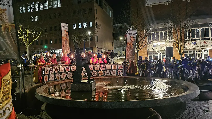 Am Nachmittag ging es dann weiter nach Karlsruhe, wo am Marktplatz mit der traditionellen Schlüsselübergabe feierlich die neue Kampagne eingeläutet wurde. Anschließend fand am Narrenbrunnen gemeinsam mit dem FKF die Narrentaufe statt. Bei fröhlicher Stimmung, vielen bekannten Gesichtern und echtem Fasnachtsgeist wurde der Auftakt der neuen Kampagne gebührend gefeiert – ein gelungener Start in eine närrische Saison voller Spaß, Gemeinschaft und guter Laune!