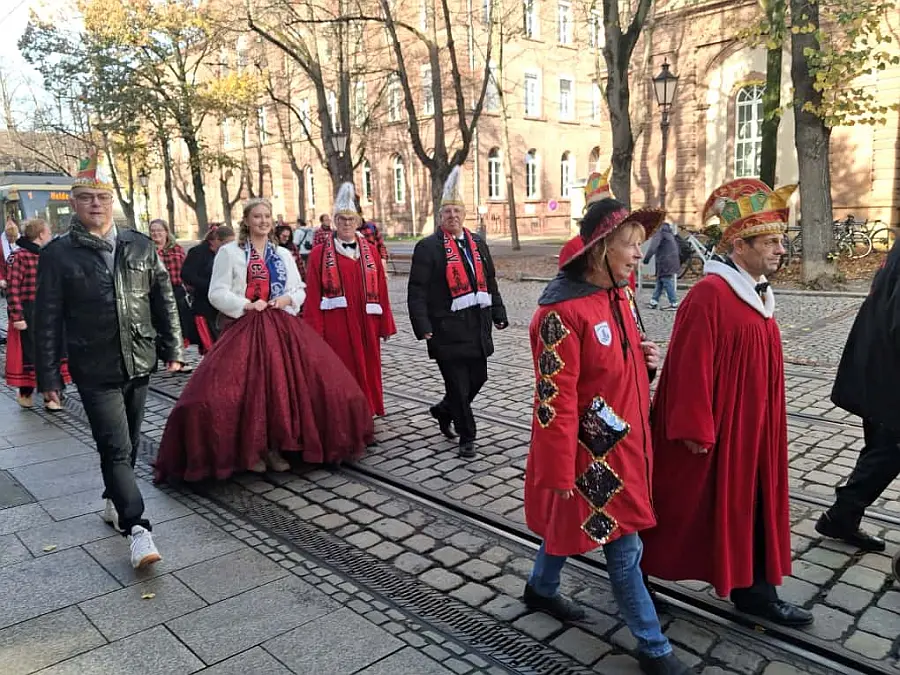Am 11.11.2025 pünktlich um 11:11 Uhr war es endlich wieder soweit: Die fünfte Jahreszeit wurde feierlich eröffnet! Einige unserer Aktiven, angeführt von unserem Präsidenten, waren im Durlacher Rathaus mit dabei, um gemeinsam mit den närrischen Freunden die neue Kampagne offiziell zu begrüßen. Mit guter Laune, Musik und bunten Kostümen wurde der Start in die Fastnachtssaison gebührend gefeiert.