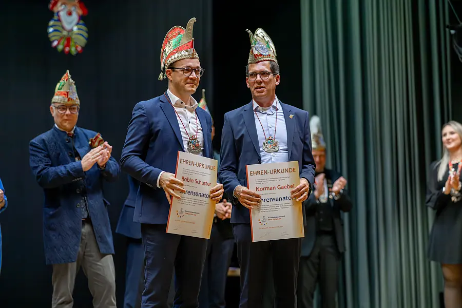 Darauf folgten der Auftritt der Ehrensenatoren und Ehrenräte sowie die Ernennung der neuen Ehrensenatoren Robin Schuster und Norman Gäbel.