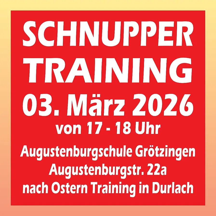 - Letschebacher Minis: 03. März 2026, 17:00-18:00 Uhr in der Augustenburgschule Grötzingen, Augustenburgstr. 22a, 76229 Grötzingen